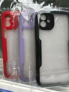 Coque arrière transparent silicone contour couleur avec protection lentilles camera pour IPhone.